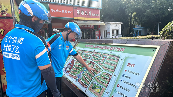 此外,社區(qū)還貼心優(yōu)化配送環(huán)境。小區(qū)出入口立起全景圖立牌,清晰標(biāo)注配送路線和臨時(shí)停車位;主干道增設(shè)24個(gè)指引牌,44棟樓都裝上了夜光樓棟牌,路口盲區(qū)的凸面反光鏡,守護(hù)著小哥的騎行安全。不僅如此,社區(qū)還經(jīng)常組織小哥們開展活動(dòng),盛夏送清涼時(shí),遞上防暑物資;趣味運(yùn)動(dòng)會(huì)上,一起玩“大錘打氣球”“摸石過(guò)河”,歡聲笑語(yǔ)中拉近了彼此的距離。