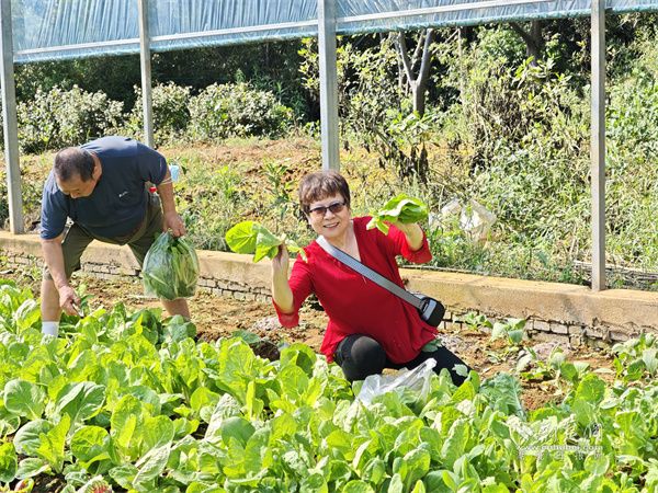 隨后的田園采摘環(huán)節(jié),居民們戴上手套、提起菜籃,親手采摘各類時(shí)令蔬菜,在勞動(dòng)中體驗(yàn)收獲的喜悅。大家一邊彎腰采摘,一邊交流生活中的種植經(jīng)驗(yàn)和健康飲食心得,現(xiàn)場(chǎng)充滿歡聲笑語(yǔ)。