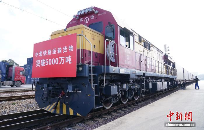 2025年1月2日,一列滿載新鮮果蔬的中老鐵路國(guó)際貨物列車從中國(guó)云南昆明啟程駛向老撾,標(biāo)志著自2021年12月3日全線開(kāi)通運(yùn)營(yíng)以來(lái),中老鐵路貨物運(yùn)輸總量突破5000萬(wàn)噸?!≈行律缬浾?劉冉陽(yáng) 攝