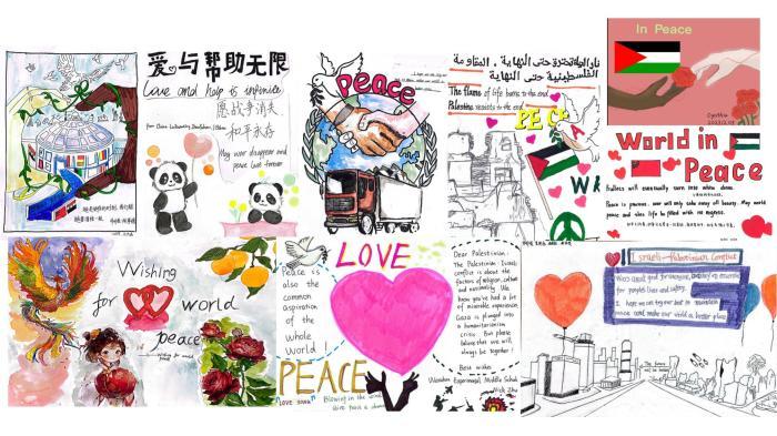 浙江溫州學(xué)生所畫(huà)“心繪希望 愛(ài)滿加沙”公益作品。(受訪者供圖)