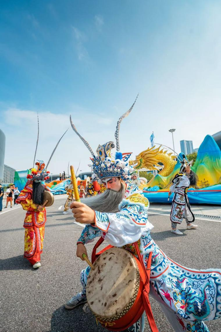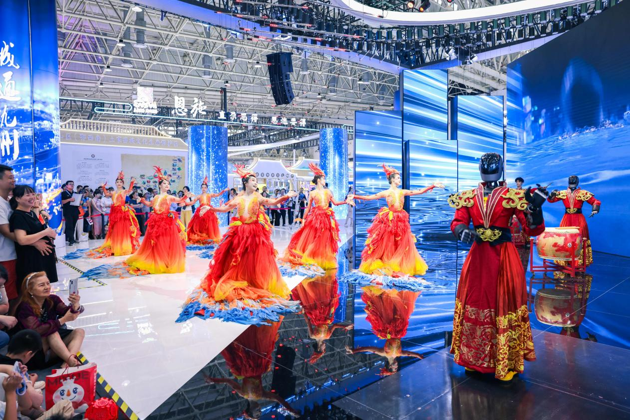 在展館內(nèi)外可以看到,各展區(qū)人頭攢動(dòng),在廣東長隆展區(qū),兩點(diǎn)半的演出還沒開始,人流已經(jīng)里三層外三層打圍。伴著強(qiáng)勁律動(dòng),外籍演員們還邀請觀眾共舞互動(dòng),現(xiàn)場氣氛爆棚。展館內(nèi)部,韓國館、陜西館等展位的熱舞、非遺展演成了焦點(diǎn)。多種多樣的智能設(shè)備體驗(yàn)等,更成為小朋友的樂園。