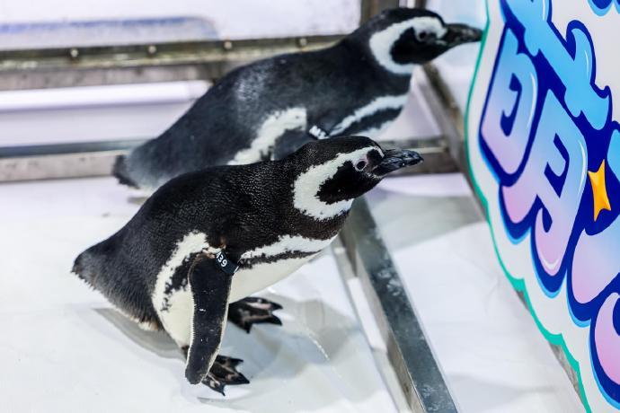 博覽會(huì)首日下午,2只體態(tài)優(yōu)雅的麥?zhǔn)檄h(huán)企鵝,在專業(yè)保育員的悉心陪伴下,邁著標(biāo)志性的“搖擺舞步”亮相展區(qū),立即引爆現(xiàn)場(chǎng)氣氛。保育員耐心向觀眾講解企鵝的生活習(xí)性及保護(hù)知識(shí),現(xiàn)場(chǎng)互動(dòng)氛圍熱烈,小朋友們興奮地踮起腳尖,大人們紛紛舉起手機(jī),記錄下這難得的時(shí)刻?!皼](méi)想到能在展會(huì)上看到真企鵝!太驚喜了!”來(lái)自長(zhǎng)沙的游客王先生激動(dòng)地說(shuō)道。