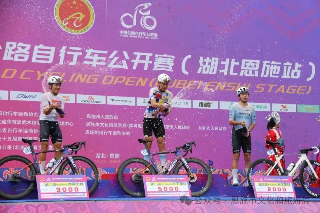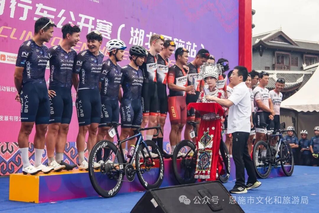 2025年中國(guó)公路自行車(chē)賽(湖北恩施站)第一賽段所有比賽圓滿結(jié)束,經(jīng)過(guò)激烈角逐,跡馳-瑞豹車(chē)隊(duì)獲得俱樂(lè)部組團(tuán)體積分第一名,來(lái)自跡馳-瑞豹車(chē)隊(duì)的VLADISLAY SOZINOV最終憑借強(qiáng)勁的沖刺能力摘得桂冠,被授予白衫,來(lái)自GUSTO SUPERTEAM車(chē)隊(duì)的VITALII和重慶南岸風(fēng)騎捷安特車(chē)隊(duì)的BLOKHIN IVAN 分獲二、三名;男子精英組、大學(xué)生組、青少年組及女子精英組冠軍分別由來(lái)自恒宇單車(chē)的馮浩然、任中昊、DYC-晟亦青訓(xùn)選手方宇軒和Bigrock大石魅騎廠隊(duì)張婷婷獲得。