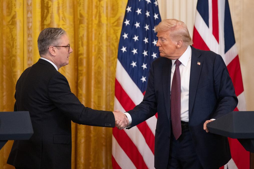 2月27日,美國(guó)總統(tǒng)特朗普(右)與英國(guó)首相斯塔默在華盛頓白宮出席聯(lián)合記者會(huì)。新華社記者胡友松攝