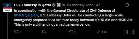 美國(guó)駐卡塔爾使館表示,美方此次演練與卡塔爾民防總局協(xié)調(diào)進(jìn)行。