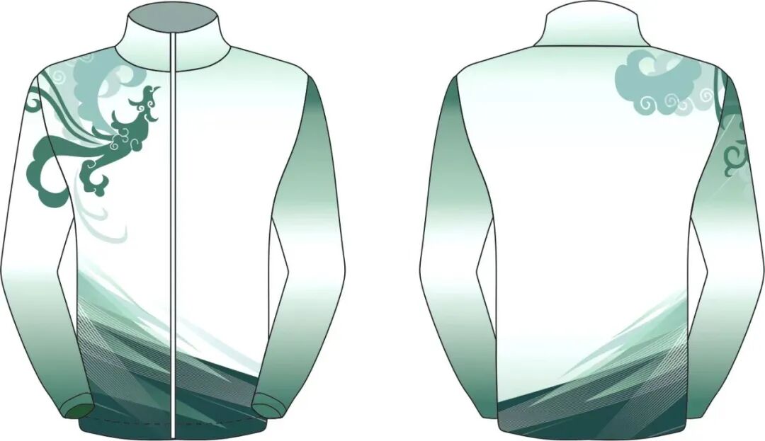 以白色為基色,運(yùn)用淺綠、翠綠、墨綠不同層次的綠色,呈現(xiàn)鳳鳥“展翅騰飛” 的視覺遞進(jìn)感。展現(xiàn)了楚文化的獨(dú)特精神內(nèi)涵,寓意湖北的繁榮昌盛、技能騰飛的美好未來(lái)。