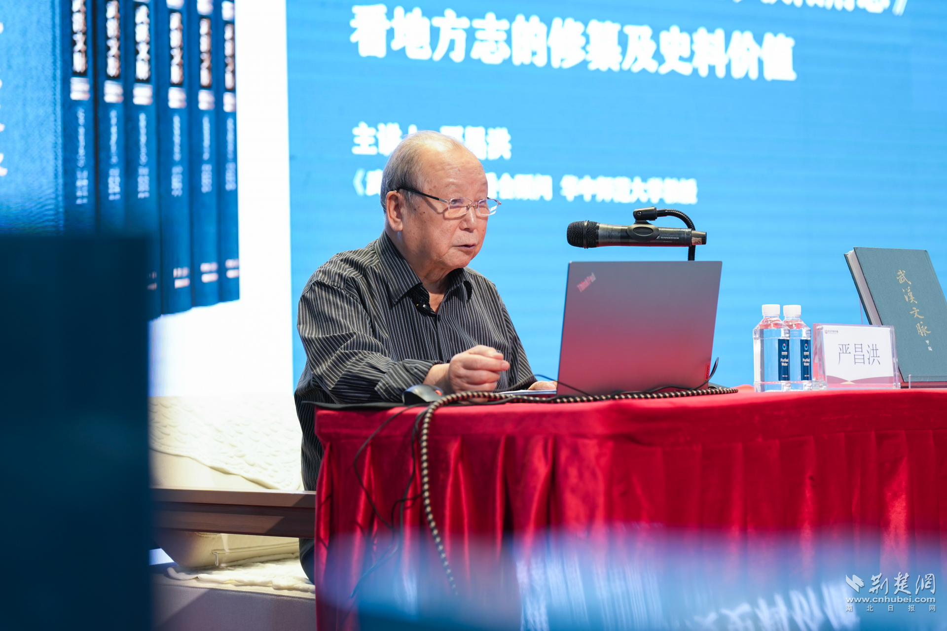 講座中,嚴(yán)昌洪教授圍繞《武漢文脈》“文獻(xiàn)編”與乾隆《漢陽(yáng)府志》簡(jiǎn)介、地方志的修纂、地方志的史料價(jià)值、整理出版舊志須注意的問(wèn)題等四個(gè)方面展開(kāi)闡述。他指出,《〔乾隆〕漢陽(yáng)府志》詳細(xì)記載了清代乾隆年間漢陽(yáng)府及其轄縣的歷史沿革與地理人文風(fēng)貌,其首創(chuàng)的“天官卷”體例尤為獨(dú)特,系統(tǒng)地輯錄天文歷法內(nèi)容,具有較高的史料稀缺性。