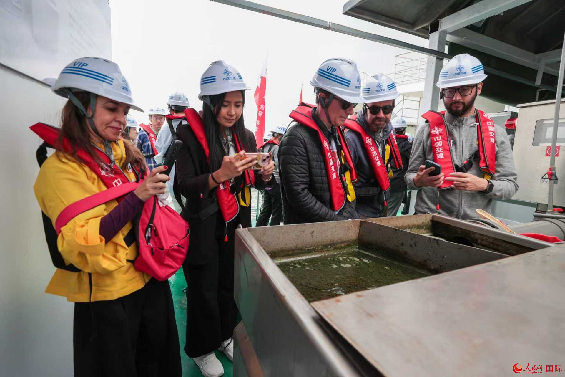 2025“一帶一路”媒體合作論壇中外媒體聯(lián)合采訪團(tuán)在中交集團(tuán)為滇池量身定制的“藻水共治”一體化平臺采訪調(diào)研。人民網(wǎng)記者 張武軍攝