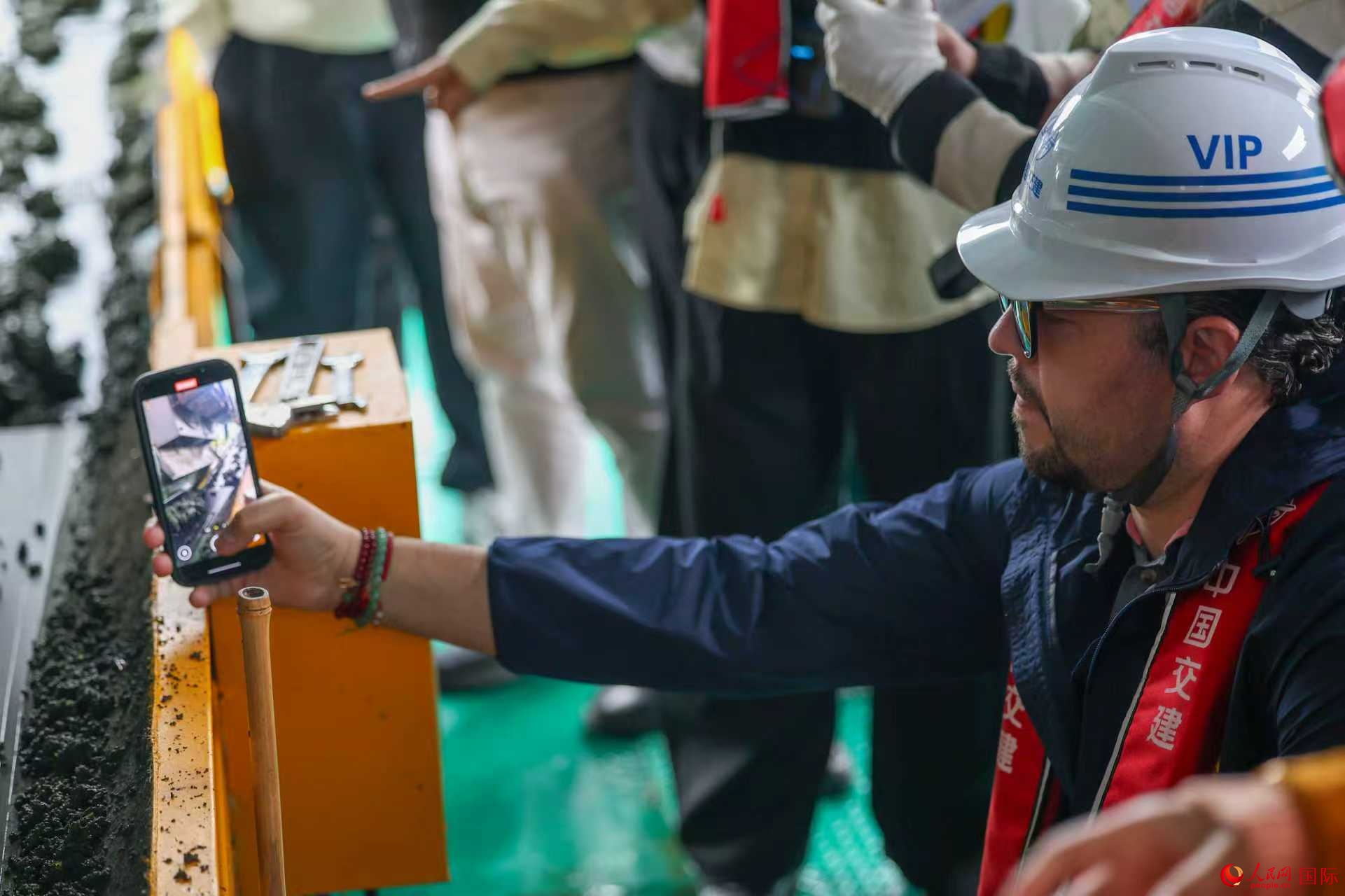 2025“一帶一路”媒體合作論壇中外媒體聯(lián)合采訪團(tuán)的外媒記者正在拍攝“藻水共治”一體化平臺過濾產(chǎn)生的藻泥。人民網(wǎng)記者 張武軍攝