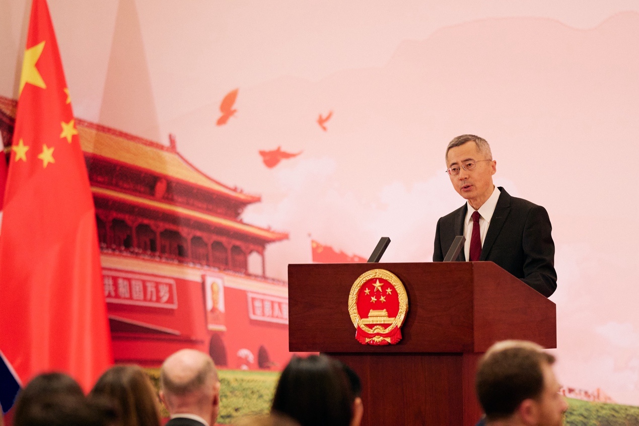 中國駐英國大使館臨時代辦王起發(fā)表致辭。楊浩鵬攝