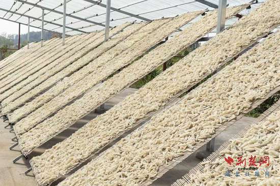 而這樣的環(huán)境催生了“豆絲”這一鄂州傳統(tǒng)美食。除了大米外,綠豆、黃豆、葛根等“豆絲”原材料生長(zhǎng)在山溝、溪邊、林中。“每年入冬,幾乎家家起大灶開(kāi)始制作豆絲,風(fēng)干后可以留存整個(gè)冬天。”周楊介紹。