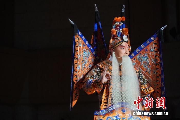 京劇演員譚正巖在音樂會(huì)上表演京劇《定軍山》片段。中新網(wǎng)記者 魏晨曦 攝