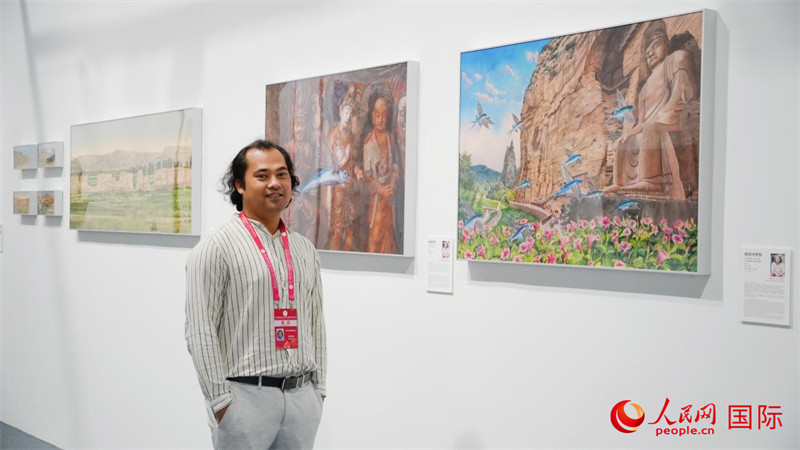 “非常開心能全程參與此次從甘肅采風(fēng)、杭州共創(chuàng)到敦煌展出的全過(guò)程!”孟加拉國(guó)藝術(shù)家蒙蒙爍在敦煌文博會(huì)現(xiàn)場(chǎng)難掩激動(dòng)之情,他分享道:“這段經(jīng)歷注定銘刻于我生命之中。我們雖來(lái)自不同國(guó)度、使用不同語(yǔ)言,卻對(duì)美有著共同的追求,對(duì)和平懷有一樣的渴望,對(duì)未來(lái)秉持相通的信念。此次交流不僅為我們迸發(fā)出豐富的創(chuàng)作靈感,更讓我們結(jié)下了深厚而珍貴的友誼?!?/p>
