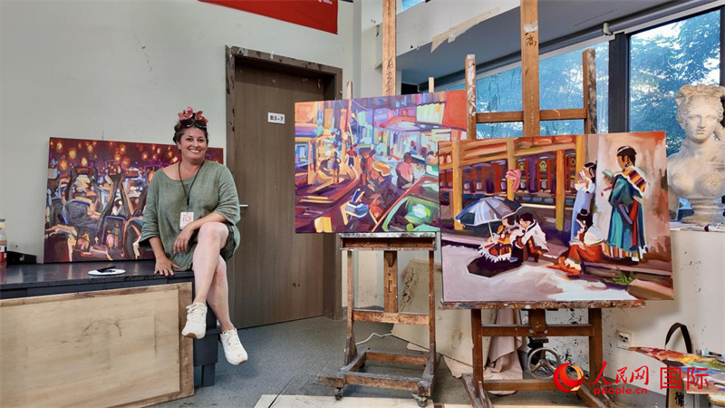 加拿大藝術(shù)家米歇爾在中國(guó)美術(shù)學(xué)院畫室創(chuàng)作。人民網(wǎng) 嚴(yán)小晶攝