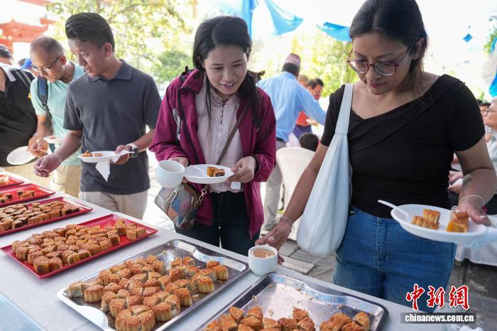 9月23日,尼泊爾中國(guó)文化中心在加德滿都舉行中秋主題活動(dòng),尼泊爾友人挑選多種口味的中式月餅?!≈行律缬浾?崔楠 攝