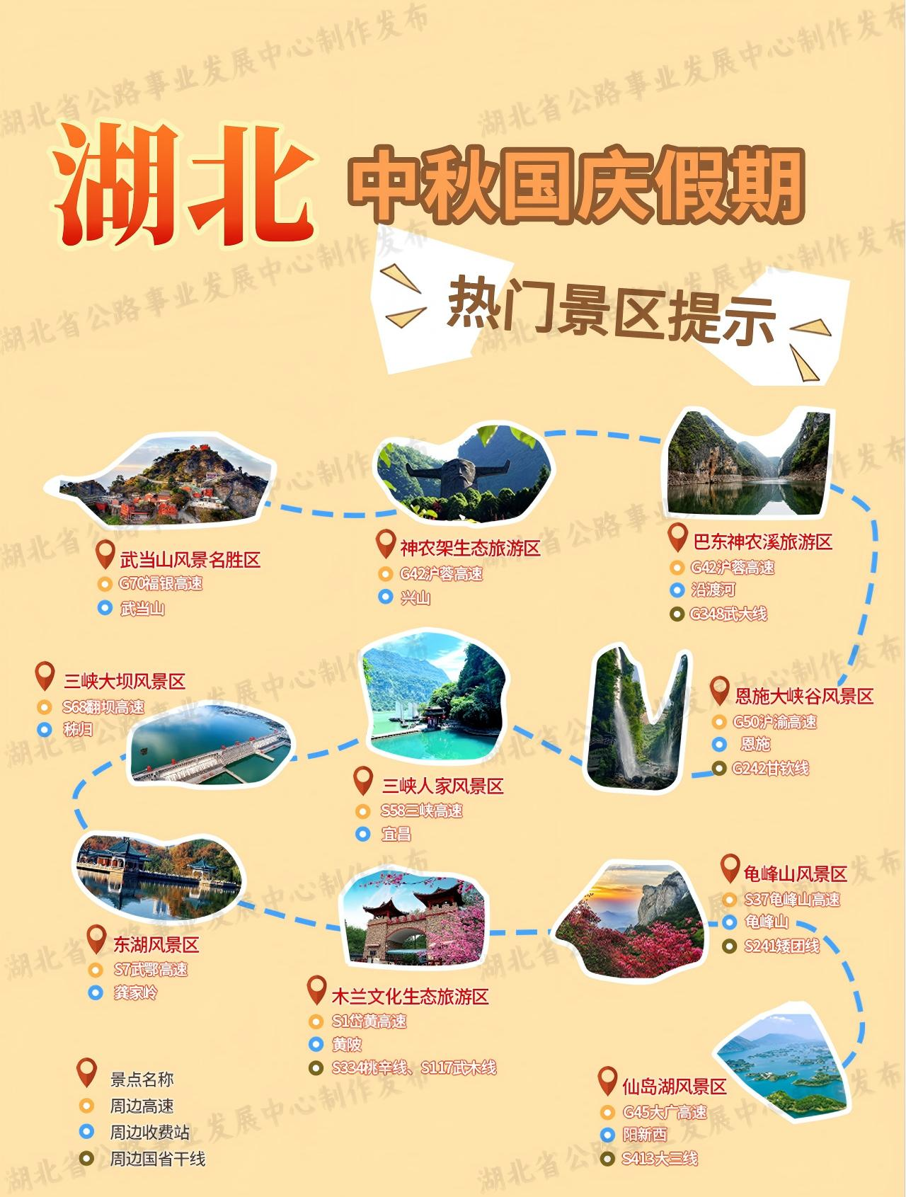2025年中秋國(guó)慶假期即將到來(lái),放假時(shí)間為10月1日至10月8日。根據(jù)國(guó)務(wù)院發(fā)布的《關(guān)于批轉(zhuǎn)交通運(yùn)輸部等部門重大節(jié)假日免收小型客車通行費(fèi)實(shí)施方案的通知》,中秋國(guó)慶假期期間,收費(fèi)公路對(duì)7座及以下小型客車免費(fèi)通行,免費(fèi)時(shí)間段為10月1日0時(shí)至10月8日24時(shí),共計(jì)八天。湖北省公路事業(yè)發(fā)展中心根據(jù)歷年來(lái)中秋國(guó)慶假期全省公路網(wǎng)運(yùn)行監(jiān)測(cè)情況分析,預(yù)計(jì)今年中秋國(guó)慶期間路網(wǎng)流量較平日大幅增長(zhǎng),社會(huì)公眾探親訪友、度假旅游等中短途出行需求將會(huì)集中釋放,省內(nèi)各市州周邊路段和通往省內(nèi)知名景區(qū)路段的交通流量將出現(xiàn)明顯增幅,省內(nèi)國(guó)高網(wǎng)、國(guó)省干線、武漢市周邊路段易出現(xiàn)不同程度的擁堵緩行?,F(xiàn)編制《2025年中秋國(guó)慶假期湖北省干線公路出行指南》,為公眾平安便捷出行提供參考。
