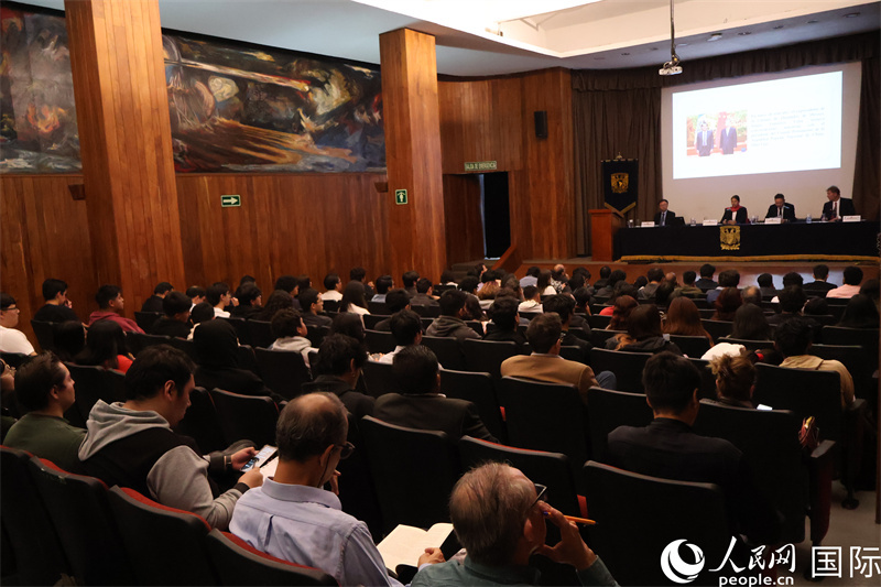 人民網(wǎng)墨西哥城9月24日電 (記者謝佳寧)9月24日,中國(guó)駐墨西哥大使陳道江應(yīng)邀為墨國(guó)立自治大學(xué)200余名師生作專(zhuān)題講座,介紹全球背景下中墨關(guān)系、中拉關(guān)系。墨國(guó)立自治大學(xué)中墨研究中心主任杜塞爾、經(jīng)濟(jì)系主任羅德里格斯陪同。