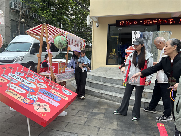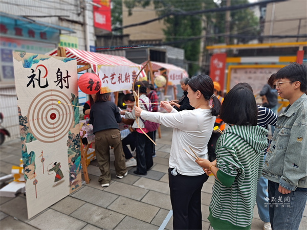 游戲互動(dòng)區(qū)氛圍熱烈。“射覆猜謎”攤位前,居民踴躍參與,猜中謎底者可獲贈(zèng)汪玉霞蘇月餅;“投壺納福”吸引眾人一試身手,在趣味中感受古禮韻味;“福來套圈”則準(zhǔn)備了洗衣液、透明皂等實(shí)用獎(jiǎng)品,深受居民喜愛。此外,“六藝禮射”項(xiàng)目讓居民親身體驗(yàn)傳統(tǒng)射藝,在拉弓搭箭間感受古人的尚武精神與禮儀風(fēng)范。