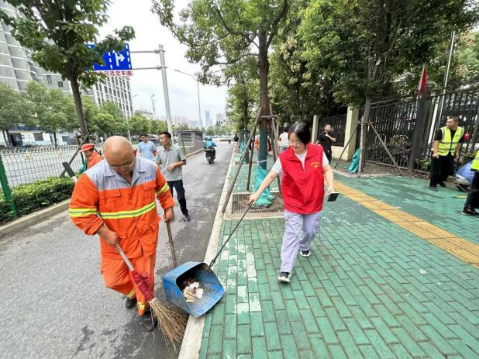 “看到街道和物業(yè)這么下力氣,我們商戶當(dāng)然不能閑著!”近日,在梨園街道東沙商業(yè)街區(qū)的節(jié)前環(huán)境整治現(xiàn)場(chǎng),一家餐飲店老板劉先生一邊和員工清理著門前地面,一邊道出眾多經(jīng)營(yíng)者的共同心聲。為以整潔優(yōu)美的城市環(huán)境迎接國(guó)慶佳節(jié),梨園街道組織了本次“i武漢i家園”節(jié)前整治行動(dòng),街道各科室、綜合執(zhí)法中心、社區(qū)工作人員、志愿者、市場(chǎng)管理方及經(jīng)營(yíng)者等六十余人共同參與,針對(duì)街區(qū)垃圾容器漫溢、綠化帶亂堆亂放等問題開展“深度清潔”,全面提升街區(qū)顏值,營(yíng)造潔凈舒心的節(jié)日氛圍。