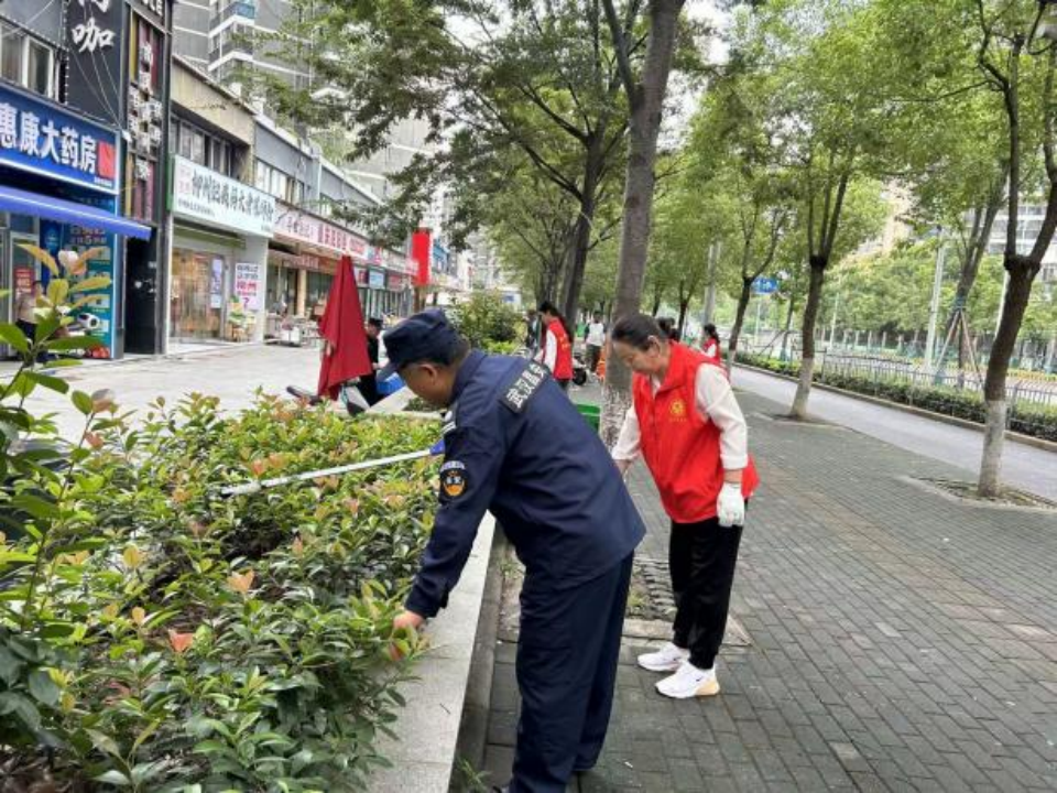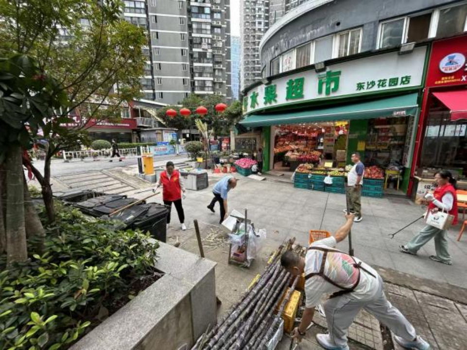 上午九點(diǎn),東沙商業(yè)街區(qū)一派熱火朝天的勞動(dòng)景象。行動(dòng)中,各方分工明確、協(xié)同發(fā)力,形成“多元共治”的生動(dòng)畫面。街道公管辦與綜合執(zhí)法中心統(tǒng)籌指揮,重點(diǎn)清運(yùn)街角巷尾積存雜物和大件垃圾;社區(qū)工作人員和志愿者深入綠化帶,細(xì)致?lián)焓盁燁^、紙屑,全面擦洗公告欄、垃圾箱等“城市家具”,有效解決容器漫溢、綠化帶藏污等問題。多家商戶也紛紛主動(dòng)加入,拿起掃帚、水桶,清洗門前路面、擦拭櫥窗、規(guī)范物品擺放,從“各掃門前雪”轉(zhuǎn)變?yōu)椤肮沧o(hù)大家園”。