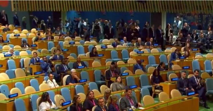 眾多聯(lián)合國會員國代表起身離席,代表席頓時空空蕩蕩