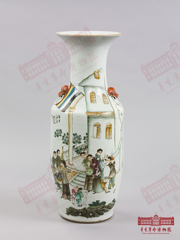 在辛亥革命博物院的展廳里,一件民國粉彩五色旗新時裝人物圖詩文獅耳撣瓶總能吸引不少參觀者駐足。這是典型的民國時期景德鎮(zhèn)窯制品,撇口處描金細膩精致,獅耳紋飾鮮活靈動,瓶身踏春圖景里,人物衣著巧妙融合傳統(tǒng)紋樣與當時新風尚,洪步余先生于瓶身題寫的“最愛晴和春景好,勸邀同伴踏春回”,墨色飽滿厚重。武昌的槍聲擊碎了封建帝制的枷鎖,這件撣瓶正是那個變革時代的“見證者”。辛亥革命之后,中國不僅迎來政治制度的新生,人們的思想與生活也踏上革新之路,彼時的中國正帶著這份勇氣,以開放姿態(tài)嘗試融入世界發(fā)展潮流。