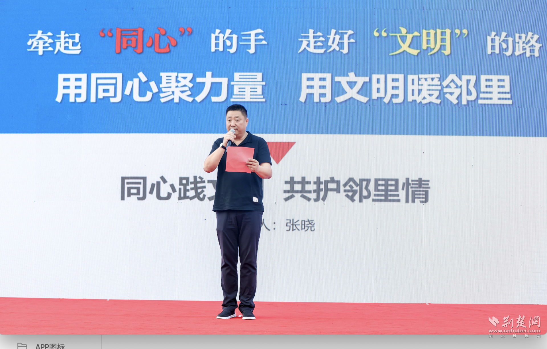 活動特別設置了文明微宣講環(huán)節(jié)。2022年第三季度“湖北好人”、2023年武漢市首屆“同心奮斗者”張曉分享了他的文明實踐故事。作為漢陽區(qū)新的社會階層人士聯(lián)誼會副會長、漢陽區(qū)清露社會工作服務中心主任,張曉以《同心踐文明 共護鄰里情》為題,講述了在日常生活中踐行文明理念的點滴經(jīng)歷。