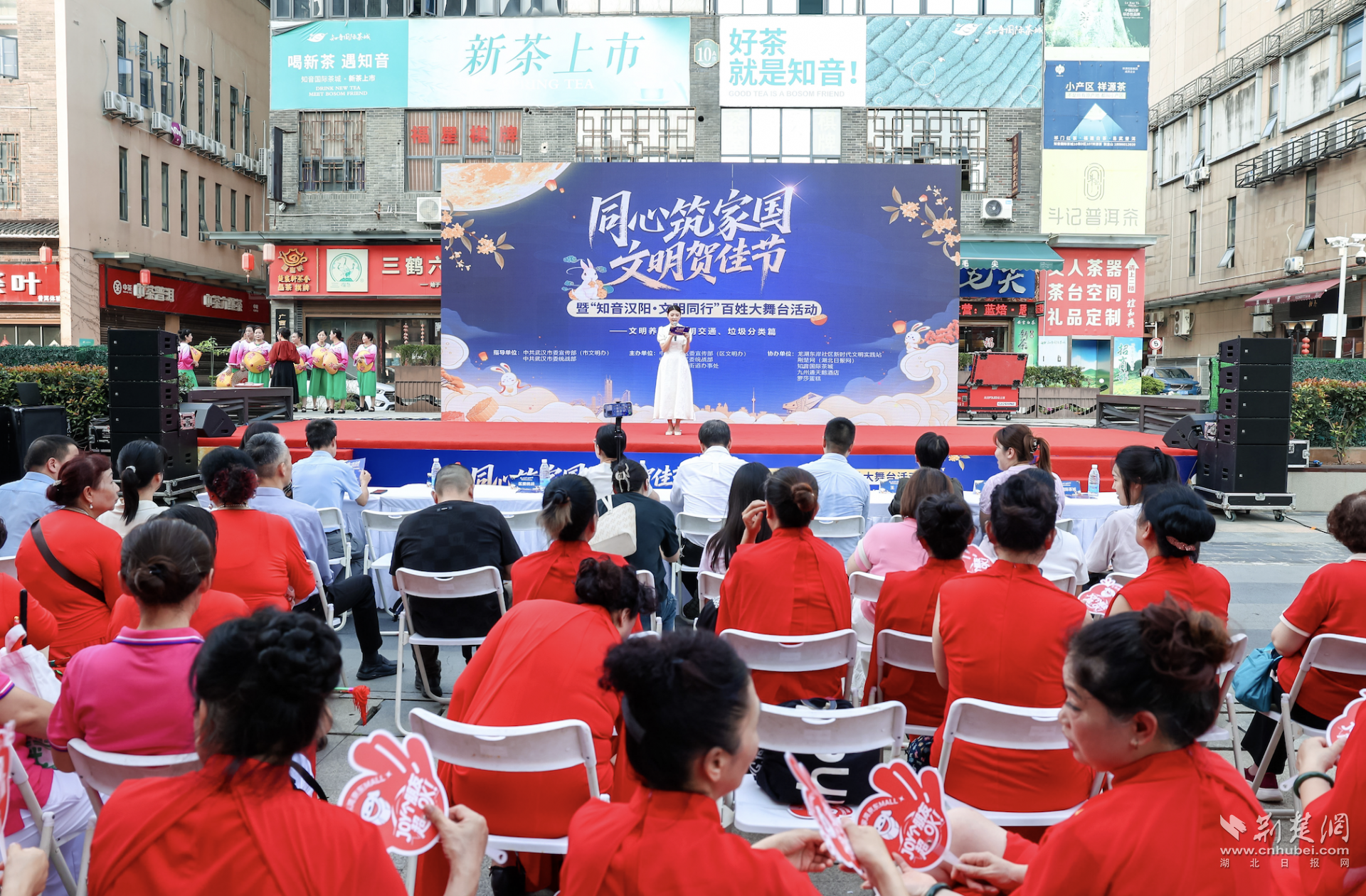 荊楚網(wǎng)(湖北日報網(wǎng))訊(記者陳泉 通訊員 張航、吳勝峰)金秋送爽,丹桂飄香。9月28日下午,武漢市漢陽區(qū)龍陽街道知音國際茶城廣場上,一場融合“家國情懷”與“文明新風”的百姓盛宴——“同心筑家國?文明賀佳節(jié)”暨“知音漢陽?文明同行”百姓大舞臺活動火熱上演。