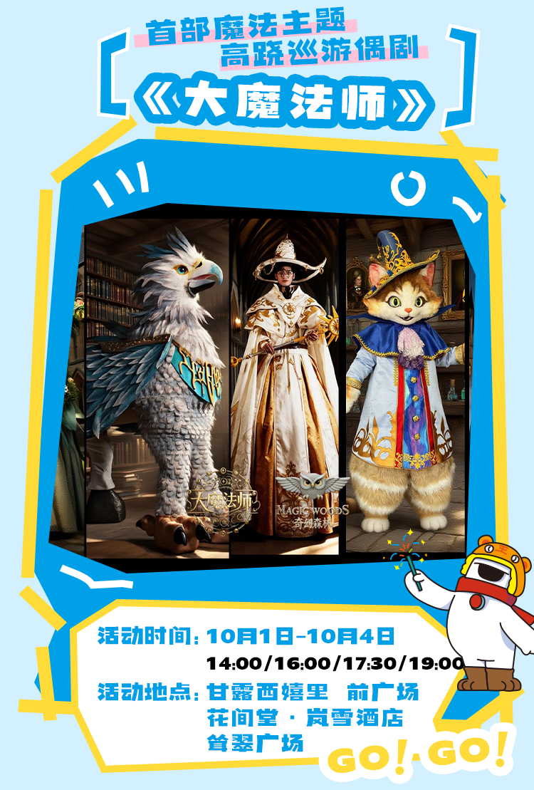 烏鎮(zhèn)戲劇節(jié)演藝團(tuán)隊(duì)將空降甘露山,這支魔術(shù)團(tuán)隊(duì)為游客帶來最新力作——中國(guó)首部魔法主題高蹺木偶劇《大魔法師》武漢首演,這也是該劇的全國(guó)首演,高2.4米白袍巫師哈瑞、精靈法師瑞秋、黑袍赫侖等IP角色震撼登場(chǎng),可一睹各類經(jīng)典魔法咒語現(xiàn)場(chǎng)版,感受大魔法的奇幻世界。