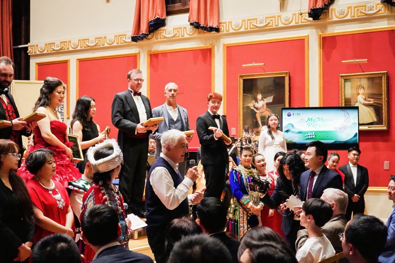 本次音樂會(huì)還特設(shè)榮譽(yù)授予環(huán)節(jié),為貴州文演集團(tuán)20名音樂家及6名歐洲音樂家頒發(fā)“中歐音樂大使”稱號(hào),以鼓勵(lì)他們履行“以音樂為橋梁、促進(jìn)人文交流”的承諾。 首次登上英國(guó)舞臺(tái)的貴州音樂家楊勝東難掩激動(dòng):“第二次搭檔我們更顯默契,中西方音樂碰撞出了新的韻味?!?/p>