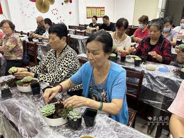 多肉微景觀制作環(huán)節(jié),在專業(yè)園藝師的指導(dǎo)下,居民們專注搭配多肉植株、營(yíng)養(yǎng)土與彩色鋪面石,巧妙裝點(diǎn)小花盆與玉兔玩偶,不時(shí)交流種植心得,詢問養(yǎng)護(hù)技巧。不一會(huì)兒,一個(gè)個(gè)融合綠意與中秋意象的微景觀陸續(xù)完成,翠綠植株與靈動(dòng)玉兔相映成趣,洋溢著溫馨與創(chuàng)意。