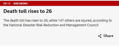 中新網10月1日電 據英國廣播公司(BBC)等外媒報道,菲律賓國家減災管理委員會稱,截至當地時間10月1日8時,9月30日發(fā)生在該國宿務省的6.9級地震已造成26人死亡、147人受傷,2個市鎮(zhèn)已經宣布進入災難狀態(tài)。