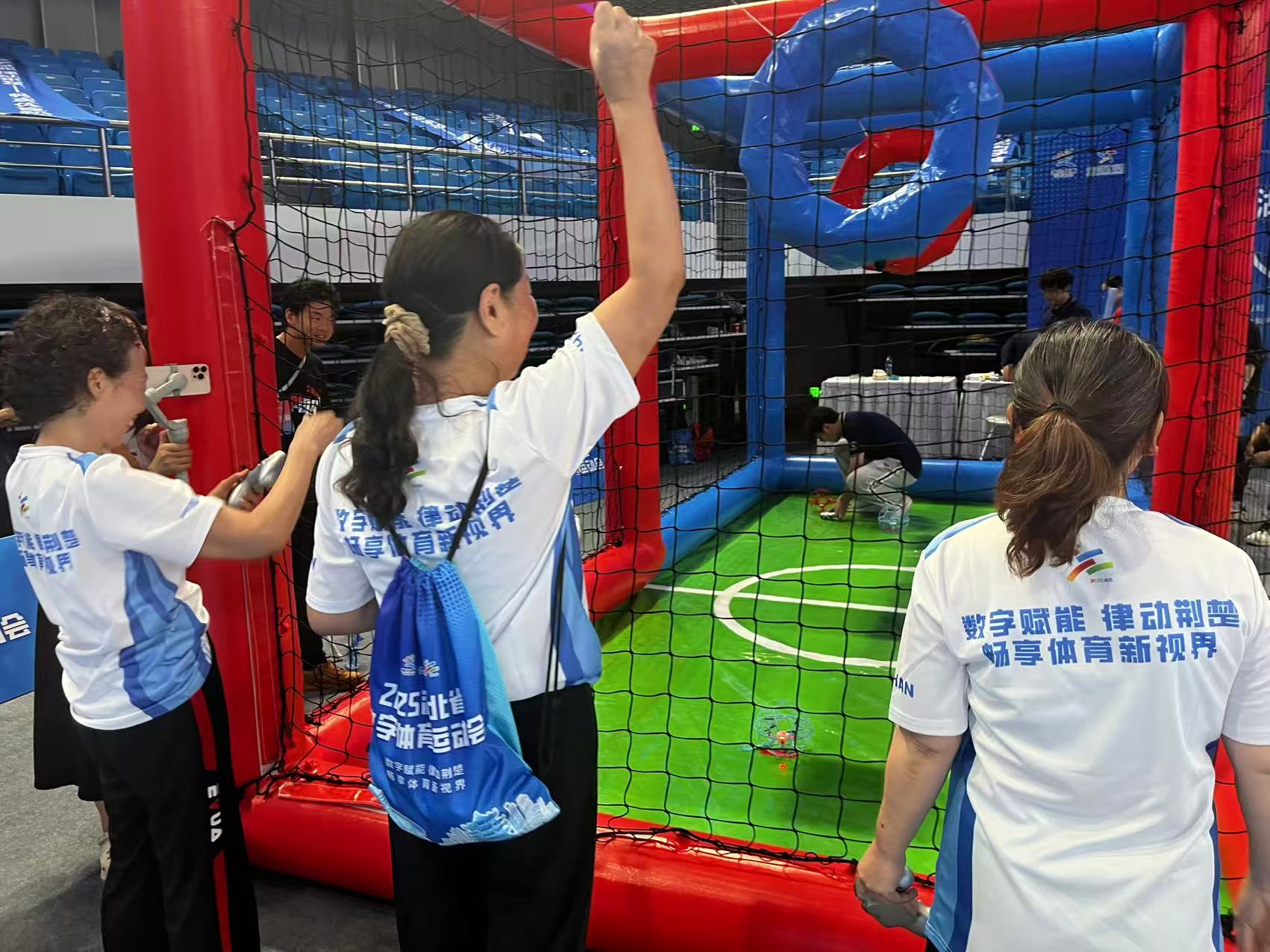 無人機(jī)足球作為新興數(shù)字體育項(xiàng)目,要求選手通過遙控設(shè)備操控?zé)o人機(jī)進(jìn)行攻防對(duì)抗,極具挑戰(zhàn)性??狄鎵鄣你y齡隊(duì)員們雖然年紀(jì)已過六旬,但操作無人機(jī)時(shí)眼神專注、手法穩(wěn)健,戰(zhàn)術(shù)配合行云流水。