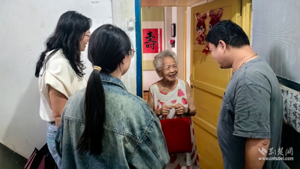 社區(qū)工作者與青年志愿者為“鶴耋安”高齡獨(dú)居老人送去節(jié)日關(guān)懷。