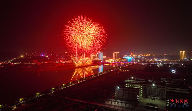 荊楚網(wǎng)(湖北日報網(wǎng))訊(記者 胡小軍 通訊員 吳滕鈺)10月2日晚,英山縣城區(qū)一河兩岸霓虹閃爍,親水步道上鮮艷的國旗迎風飄揚,處處洋溢著喜慶熱烈的節(jié)日氣氛。大別山文學廣場周圍成為縣城熱度最高的地區(qū),上萬名市民、游客從四面八方匯集于此,大家翹首以盼,提前拿出手機,選好角度,用鏡頭定格即將開始的視覺盛宴。