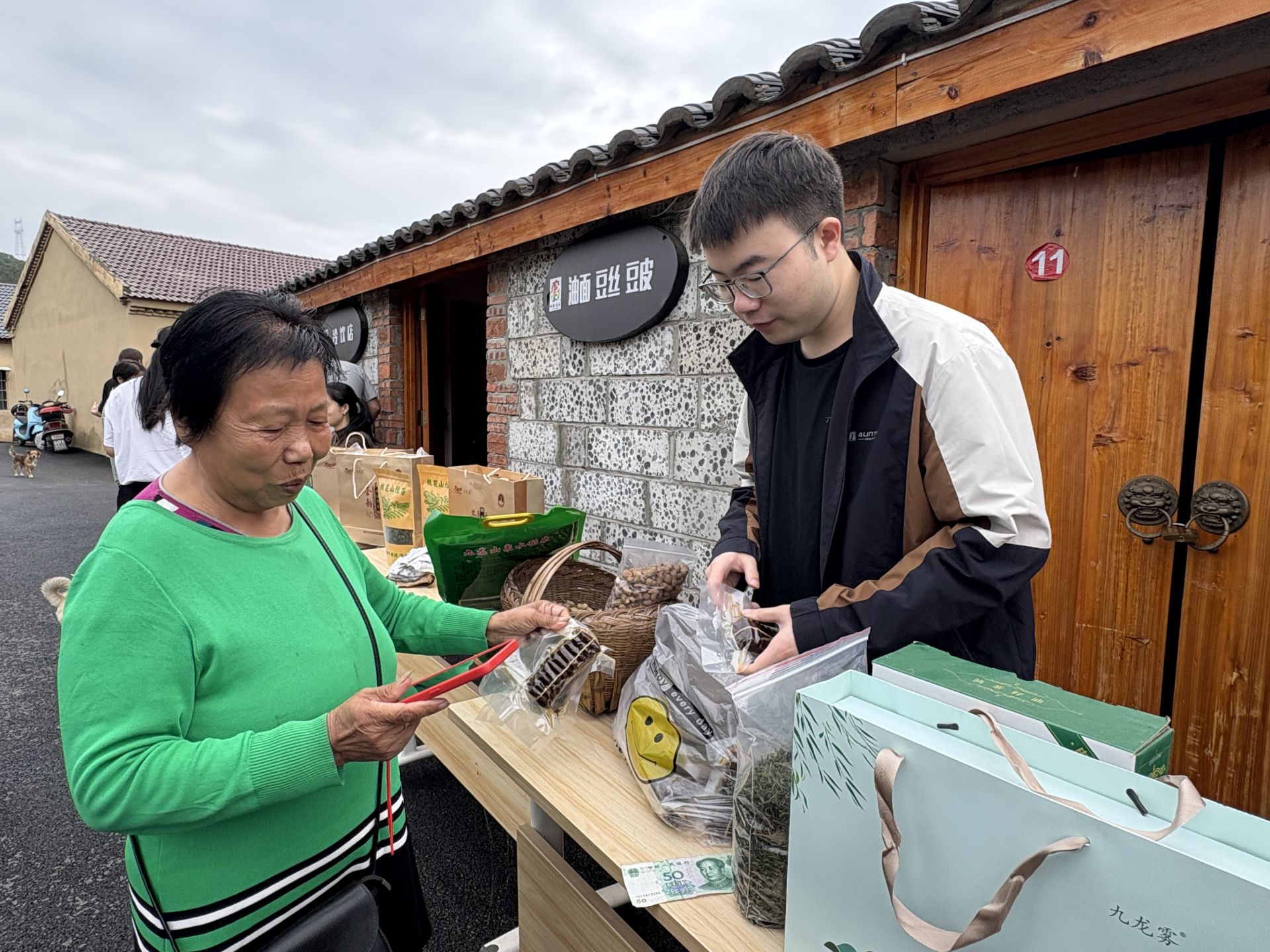 展銷(xiāo)會(huì)上,各村展臺(tái)前人頭攢動(dòng),特色農(nóng)產(chǎn)品琳瑯滿(mǎn)目——有香氣四溢的陽(yáng)平豆干、香甜可口的葡萄、香味撲鼻的花生,還有新寨村特色稻蝦米、陳灣村九龍山綠茶和柳林村本地土雞蛋等?,F(xiàn)場(chǎng)還設(shè)置了直播帶貨區(qū),主播熱情介紹每一款農(nóng)特產(chǎn)品的特色,讓更多網(wǎng)友隔著屏幕也能感受到來(lái)自陽(yáng)平鎮(zhèn)的豐收喜悅。