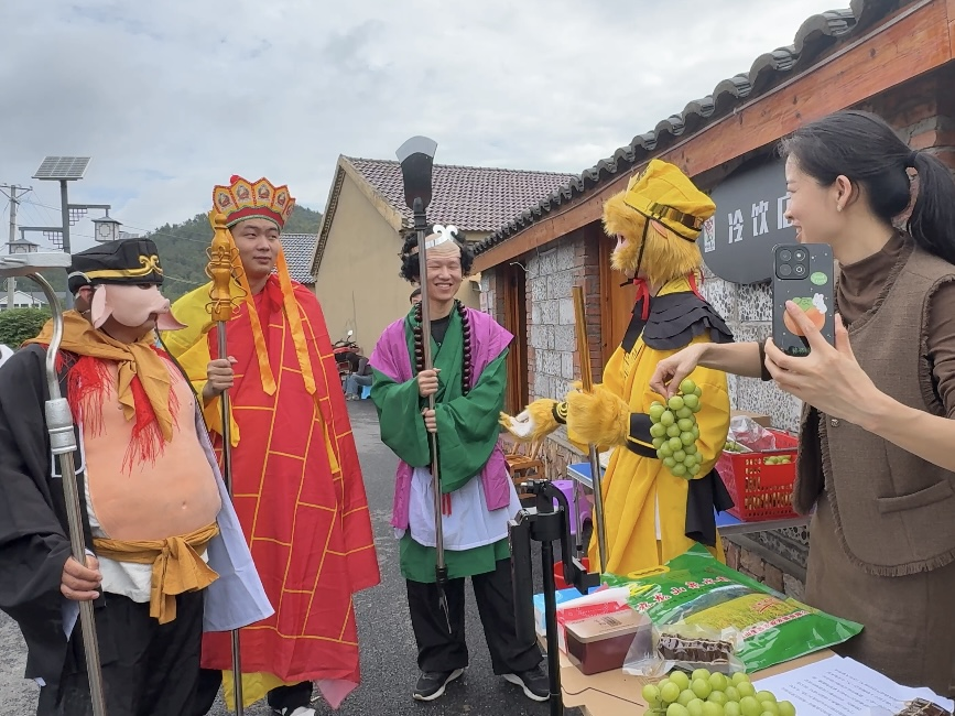 為了增添活動(dòng)的趣味性和傳播力,鎮(zhèn)黨委、政府特別安排了志愿者扮演唐僧師徒四人,作為推薦官在直播間為大家推薦各類(lèi)好物,吸引了不少粉絲進(jìn)到直播間。隨后,還沿著林澗小隱、魚(yú)鱗壩巡展,與村民互動(dòng),不僅為展銷(xiāo)會(huì)增添了歡聲笑語(yǔ),也讓鄉(xiāng)村振興的理念以更生動(dòng)的方式深入人心。