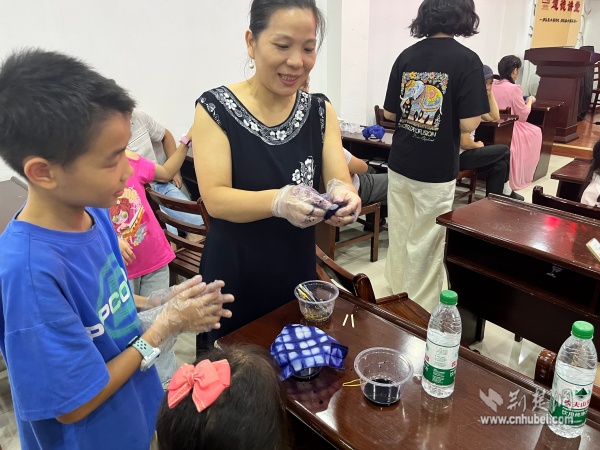 在動手體驗環(huán)節(jié),孩子們興致勃勃地嘗試各種扎結方法,家長們在旁細心協(xié)助。經(jīng)過精心捆扎與浸染,當一塊塊布料被緩緩展開,呈現(xiàn)出獨一無二的藍白紋樣時,現(xiàn)場響起陣陣驚嘆?;顒硬粌H提升了孩子們的動手能力與專注力,更讓他們深切感受到傳統(tǒng)技藝的魅力與勞動的喜悅。