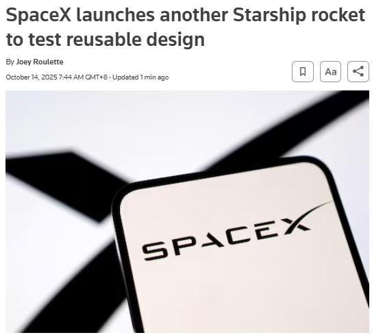 中新網(wǎng)10月14日電 據(jù)路透社報道,當?shù)貢r間13日,美國太空探索技術公司(SpaceX)新一代重型運載火箭“星艦”從得克薩斯州發(fā)射升空,實施第11次試飛。