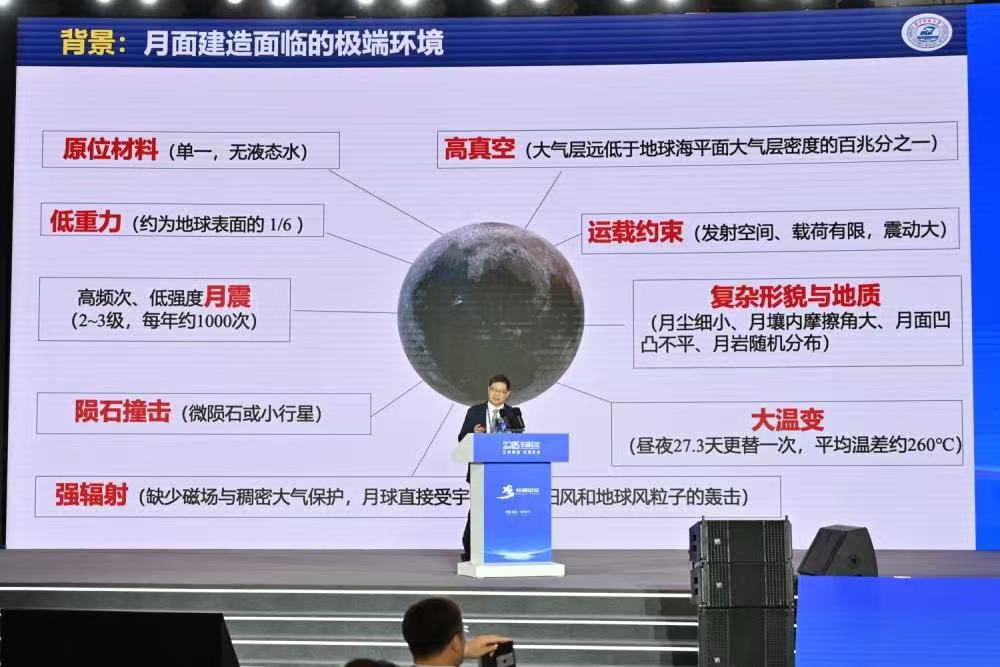 華中科技大學丁烈云教授的報告“月面建造的科學技術(shù)挑戰(zhàn)”,緊扣深空探測的時代命題,深刻剖析了月面建造在選址、結(jié)構(gòu)、材料、性能等六個方面的挑戰(zhàn),既展現(xiàn)了中國在深空建造領(lǐng)域的前瞻布局,更讓現(xiàn)場觀眾感受到科研工作者為航天夢矢志攻關(guān)的決心。