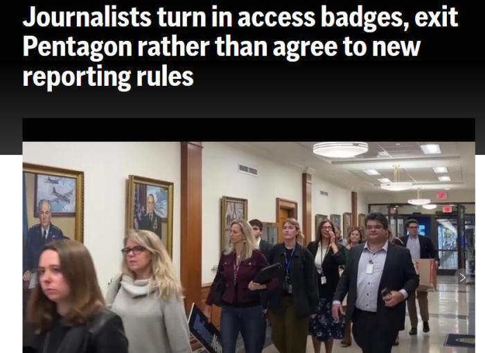 美國廣播公司(ABC)報(bào)道稱,當(dāng)?shù)貢r(shí)間15日下午4時(shí),隨著美國國防部設(shè)定的最后期限臨近,五角大樓的走廊里堆滿了文件箱,大約40到50名記者交出了證件后一起離開。