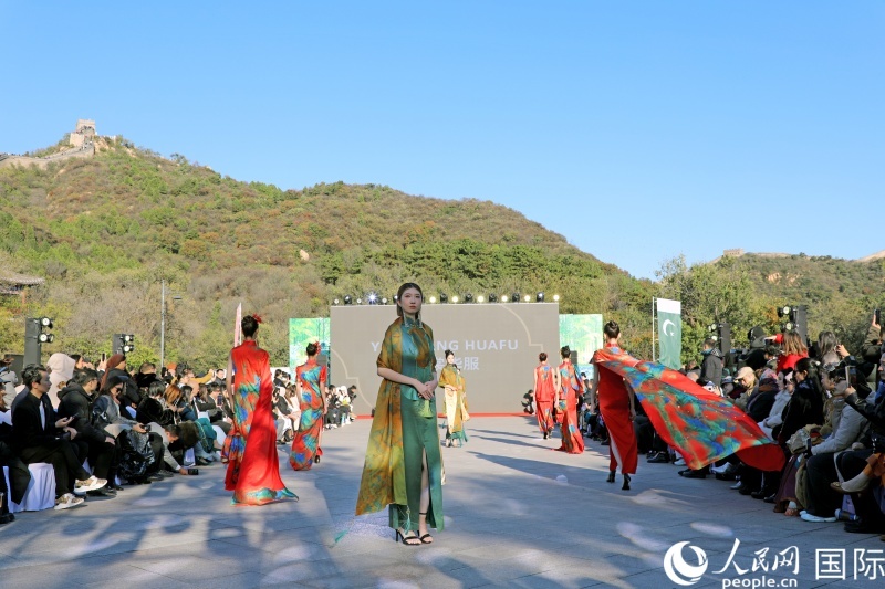 10月19日,由巴基斯坦駐華使館與中國國際文化傳播中心共同組織的中巴時裝秀在北京八達(dá)嶺長城舉行,中巴兩國官員、商界人士、媒體代表約200人出席活動。巴基斯坦設(shè)計師為本次活動設(shè)計打造了融合中國和巴基斯坦兩國時尚風(fēng)格的系列服裝作品,由中巴兩國模特共同展示。巴基斯坦駐華大使卡里爾·哈什米在現(xiàn)場表示,今年恰逢巴基斯坦國家領(lǐng)導(dǎo)人首次參觀八達(dá)嶺長城六十周年,因此在長城舉行時裝秀活動意義非凡。(人民網(wǎng)記者趙益普攝影報道)