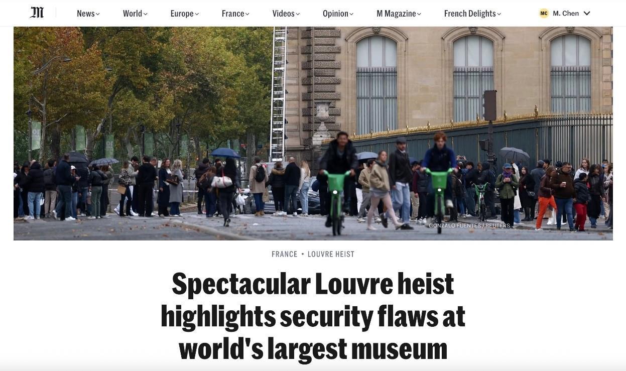 事實(shí)上,盧浮宮此前已收到巴黎警方提交的安保評(píng)估報(bào)告,館方也正研究推進(jìn)新一輪安防升級(jí)。然而,措施尚未落地,劫案就已發(fā)生。