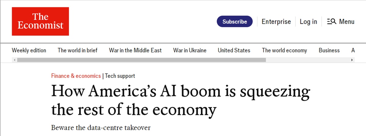 英國《經濟學人》雜志近期評論指出,除了人工智能之外,美國經濟的大部分領域似乎都顯得低迷。AI爆發(fā)式增長雖能“美化”數(shù)字,卻忽略了美國實體經濟的空心化,導致GDP含金量低。