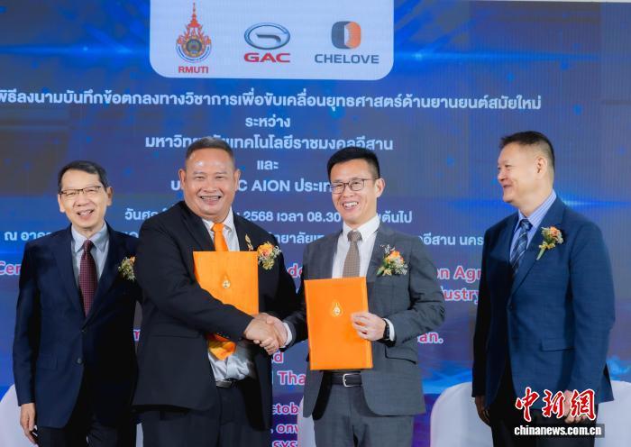 泰國東北皇家理工大學與廣汽國際泰國銷售公司在呵叻府舉行新能源汽車戰(zhàn)略推進學術合作協(xié)議簽署儀式。趙婧楠 攝