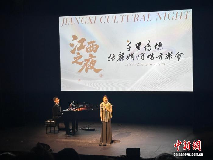江西籍青年女高音歌唱家、上饒師范學(xué)院聲樂副教授張麗娟以一場(chǎng)飽含鄉(xiāng)情的獨(dú)唱音樂會(huì),為“江西之夜”揭開序幕?!队成郊t》《上饒紅》《千里尋你》等江西經(jīng)典民歌引發(fā)當(dāng)?shù)貎S胞共鳴。張麗娟表示,希望通過音樂,讓世界聽見江西的聲音。