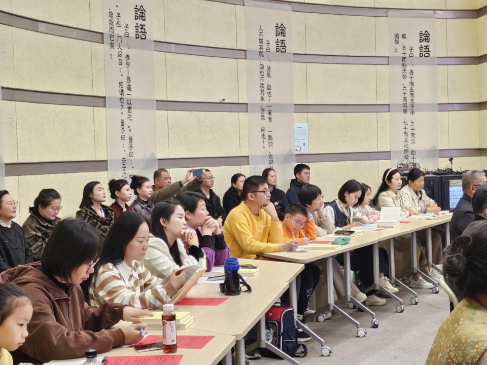 活動現(xiàn)場,來自新疆、河北等地的傳統(tǒng)文化愛好者與楚天數(shù)字書院研學(xué)班師生踴躍提問,與嘉賓展開熱烈互動?;顒游猜暎w參與者齊聲誦讀《論語》經(jīng)典章句,瑯瑯書聲回蕩廳內(nèi),讓千年智慧在當下煥發(fā)新生。此外,“論語生活美學(xué)展區(qū)”與“智慧之泉”互動墻等沉浸式體驗環(huán)節(jié),也讓讀者在場景中感受經(jīng)典與日常的融合之美。