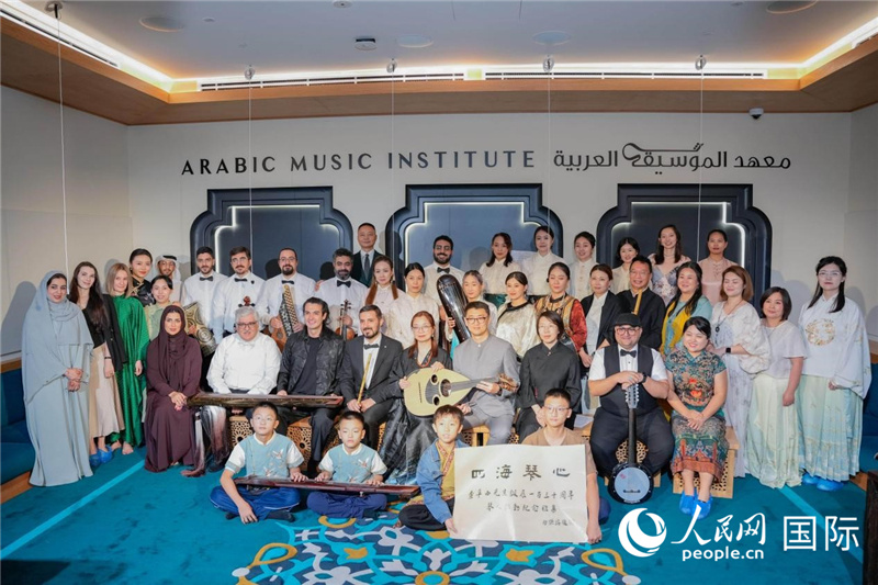 人民網(wǎng)迪拜9月27日電 (記者管克江)10月25日,迪拜的阿拉伯音樂學(xué)院內(nèi),一場跨越文化的音樂對話正在進行。舞臺中央,身著中國傳統(tǒng)服飾的古琴演奏者們和阿拉伯的音樂家們齊聚一堂。琴音似水,時而如山澗琤琮、時而如激浪奔雷;忽而旋律一變,烏德琴加入,達布卡鼓特有的節(jié)奏響起,蘆笛悠揚……當最后一句旋律消散,掌聲久久不息。