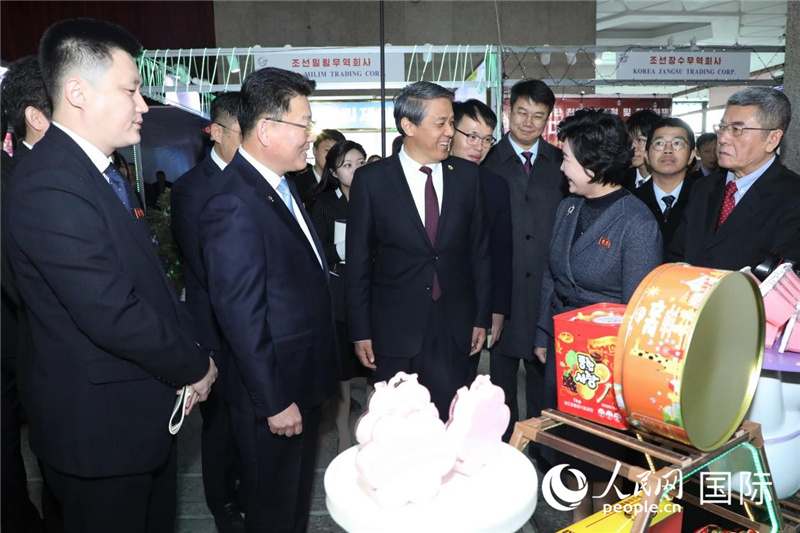 開幕式結(jié)束后,中國駐朝鮮大使王亞軍陪同經(jīng)濟(jì)相參觀了部分中國企業(yè)展臺,詳細(xì)聽取工作人員對產(chǎn)品的介紹。人民網(wǎng)記者 劉融攝