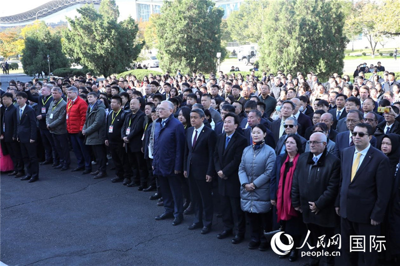 應(yīng)朝方邀請,中國駐朝鮮使館外交官和駐朝外交使團(tuán)一道參加開幕式。人民網(wǎng)記者 劉融攝